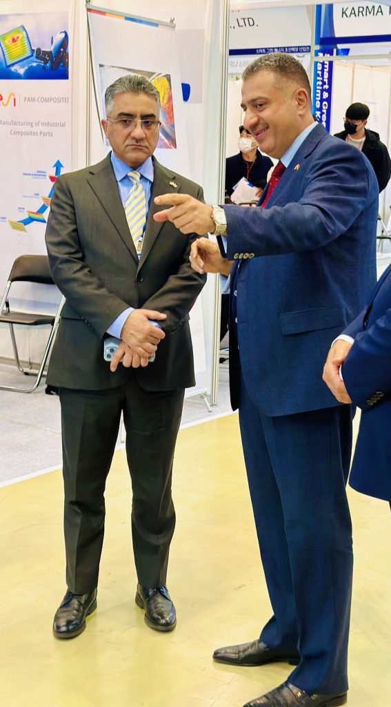 AZG is an Iraqi group of companies spread across the globe. AZG is the one and only Iraqi company to participate in such event and represent the Iraqi flag. AZG specially invited Iraq Embassy in Seoul, Republic of Korea) to it’s booth at SGEM Korea 2022 in Changwon. Mr Muthana Alumayri, Deputy Head of the Mission attended this event to represent Iraqi foreign mission. Mr Muthana Alumayri appreciated AZG’s efforts and applauded AZG’s achievements in different walks of life.